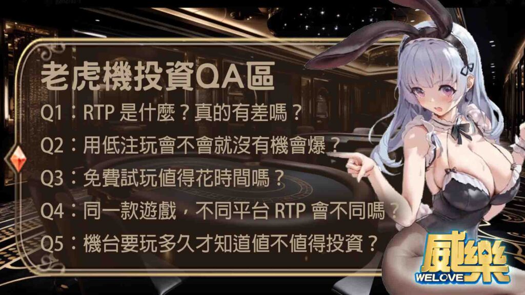 A:RTP 是指長期平均回報率,數值越高代表機台越容易回本。雖然不代表短期內一定會贏,但玩高 RTP 機台勝率的確會比較穩。