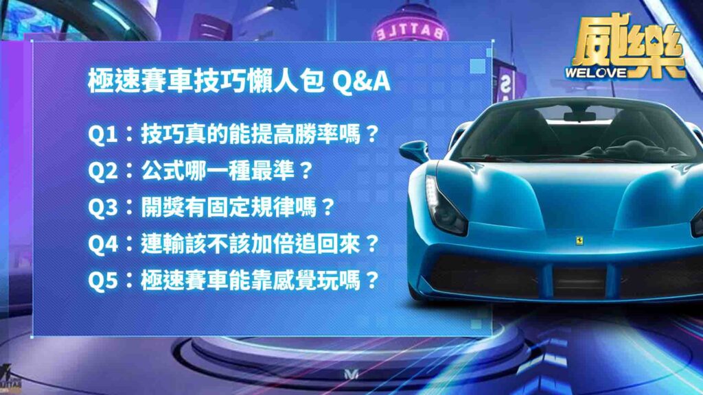 Q1:極速賽車技巧真的能提高勝率嗎?