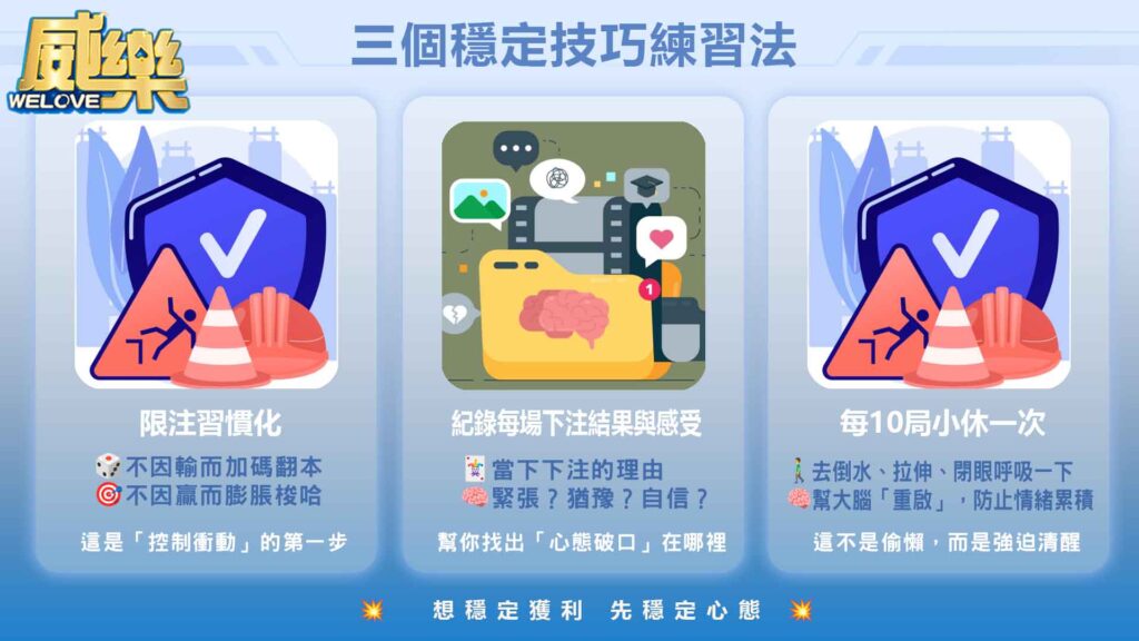 - 每 10 局小休一次:強迫自己離開牌桌,保持腦袋清醒。