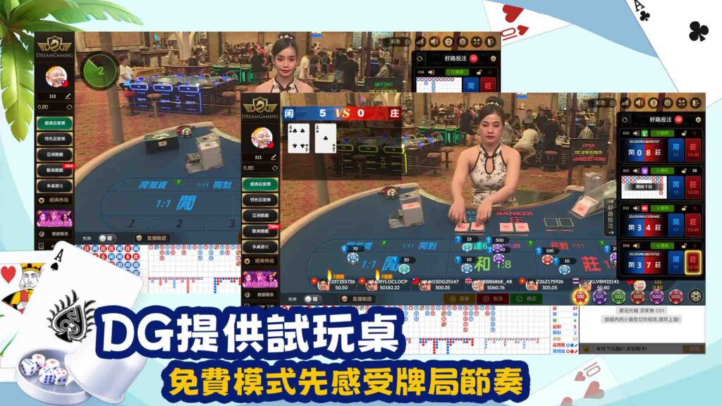 1. 試玩練習:DG 提供試玩桌,你完全可以用免費模式先感受牌局節奏。