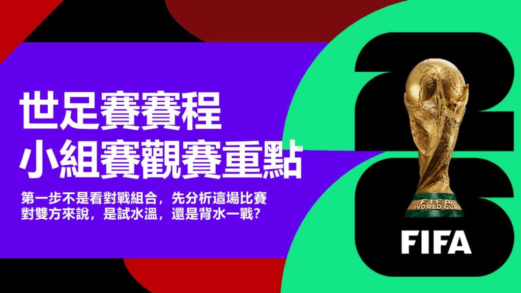 在看世足賽賽程時,第一步不是看對戰組合,而是先分析 這場比賽對雙方來說,是試水溫,還是背水一戰?只要釐清這部分,很多表面看不懂的場次,其實就合理多了。