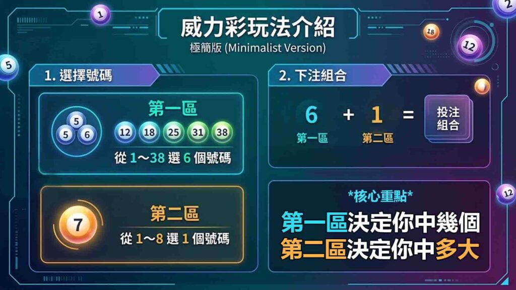 先從最基本的開始,威力彩玩法其實不難,關鍵在於「兩個區域」。